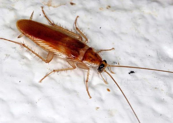 The Periplaneta Americana is the largest of the four (up to 5 cm), with well-developed wings, even if not used, and a reddish-brown colour. It colonizes dark and damp environments and is found around sewer drains, bathroom pipes and in food warehouses.